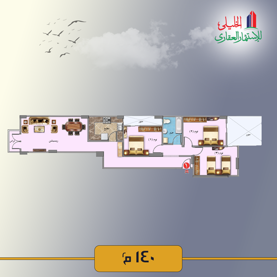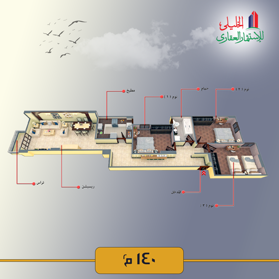 تتكون من ريسبشن , 3 غرف نوم , مطبخ , حمام و تراس