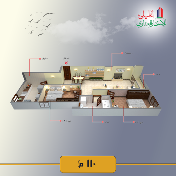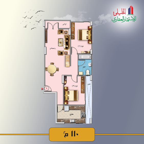 – It Consists of a Reception, 2 Bedrooms, Kitchen, Bathroom, and Terrace
