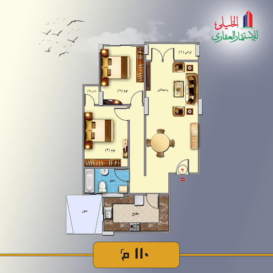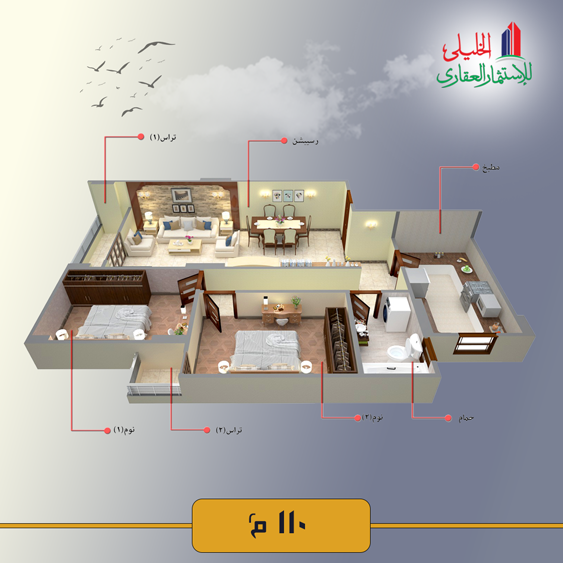 It Consists of a Reception, 2 Bedrooms, Kitchen, Bathroom, and 2Terraces