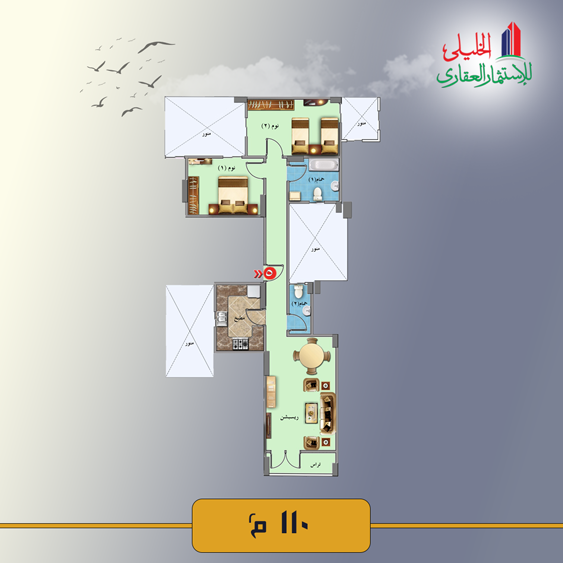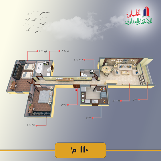 – It Consists of a Reception, 2 Bedrooms, Kitchen, Bathroom, Toilet, and Terrace