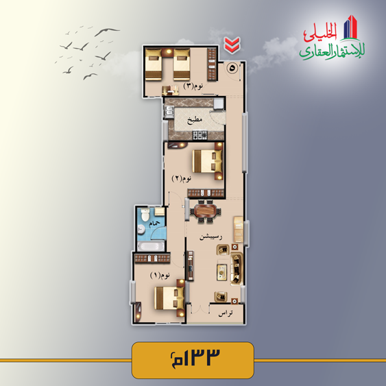 – It Consists of a Reception, 3 Bedrooms, Kitchen, Bathroom , and Terrace
