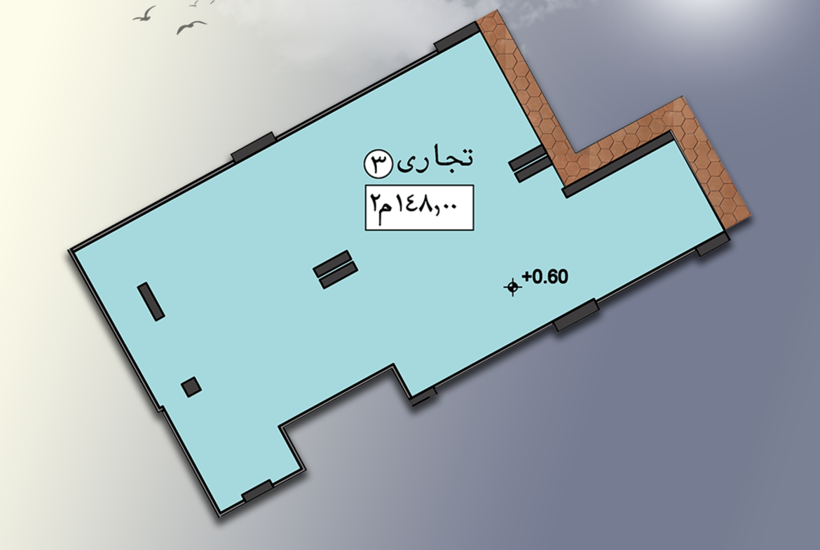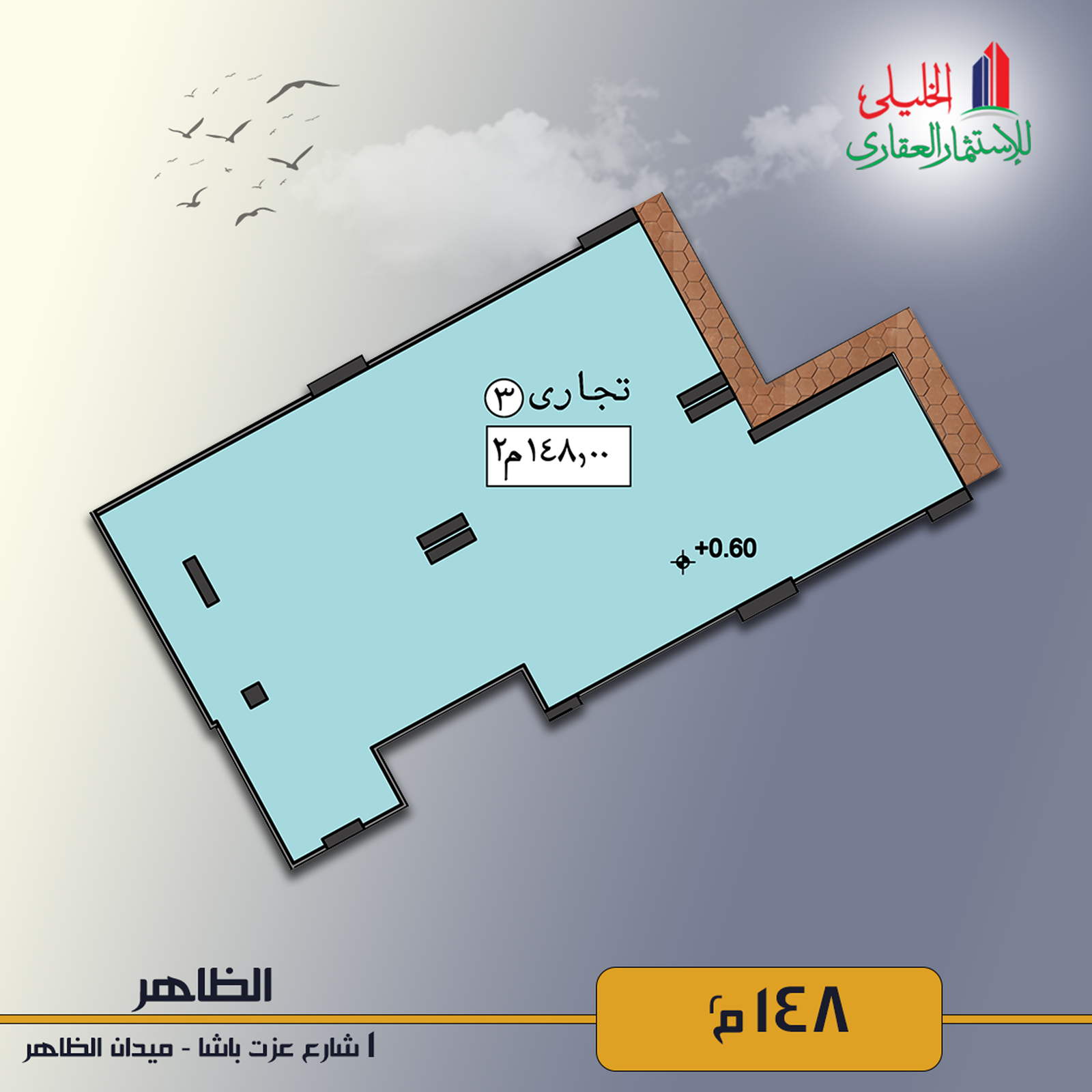 “Its area is 148 m² on the ground floor overlooking Boulevard.”